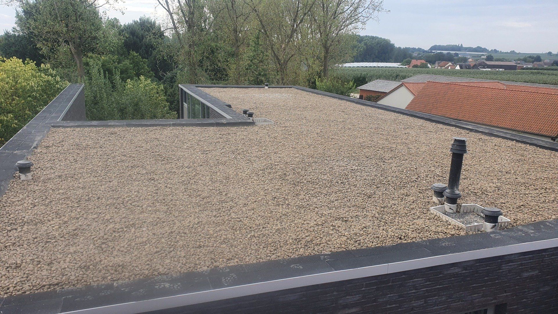Wij vinden het zeer belangrijk dat uw groendak is aangelegd met de nodige kennis, maar ook met de nodige afwerking! Dit groendak is aangelegd met sedumtegels en grind errond.