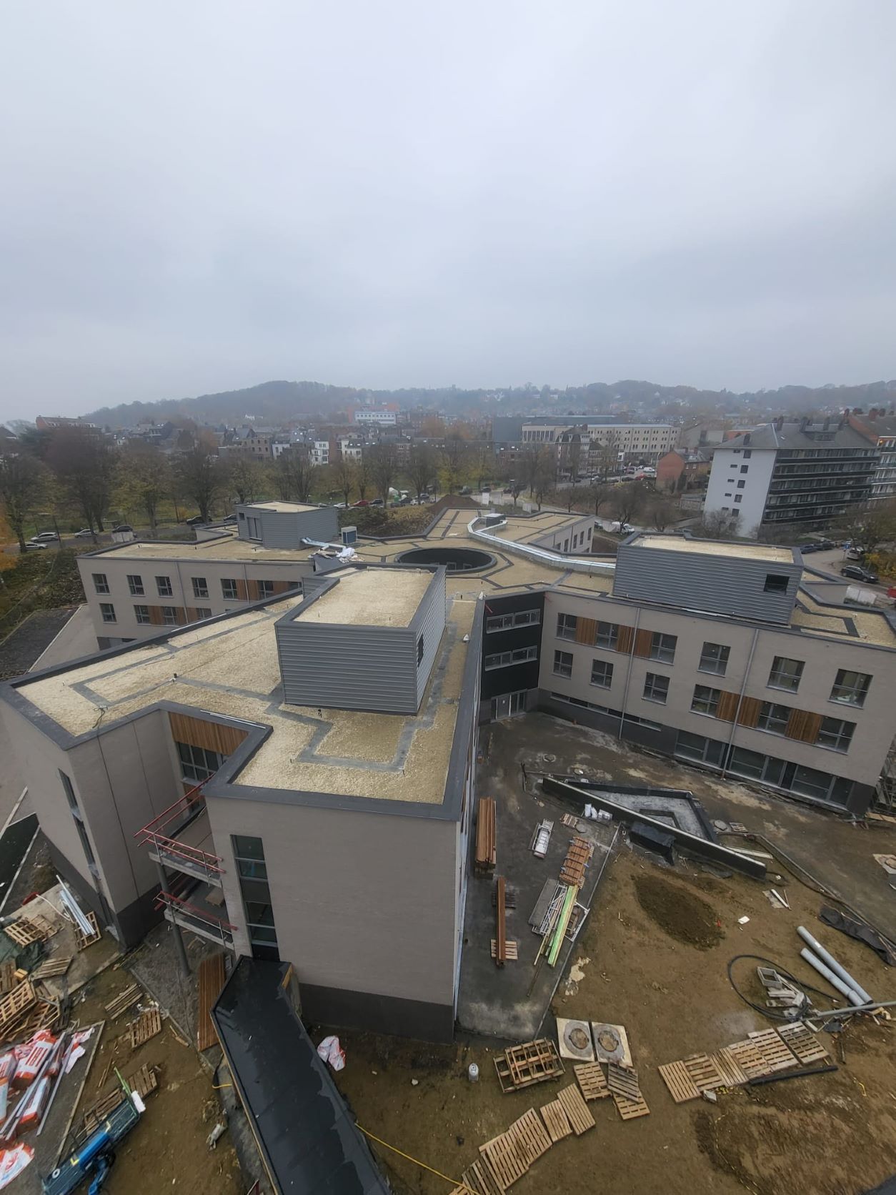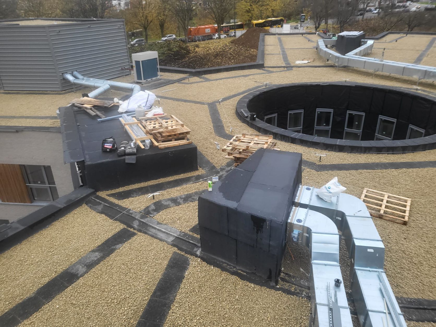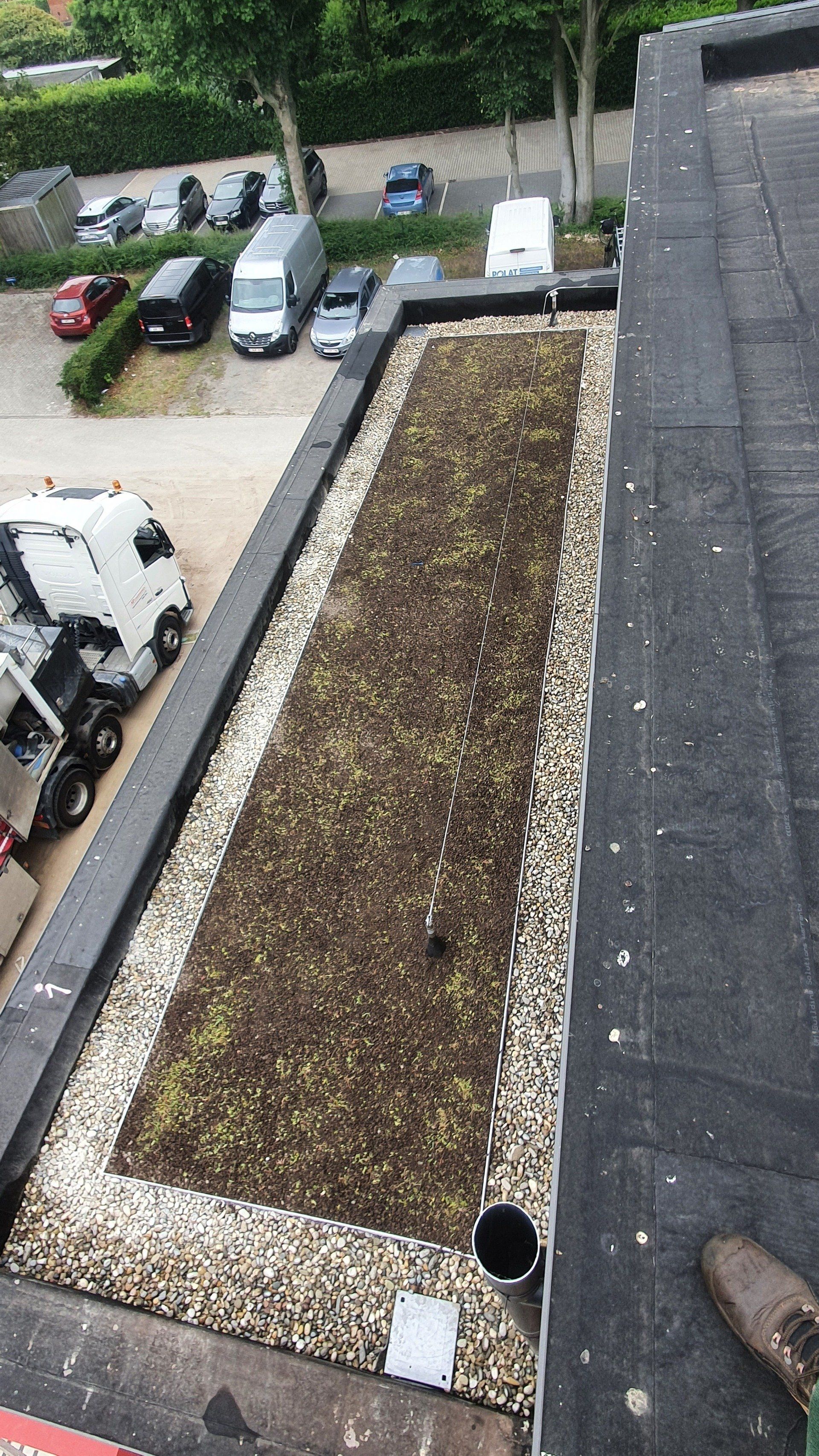 Groendak geplaats op 14 meter hoog te Antwerpen.